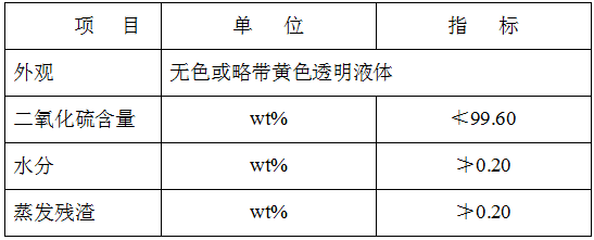 二氧化硫執(zhí)行GB/T3637一級品指標(biāo),質(zhì)量指標(biāo)如下表: