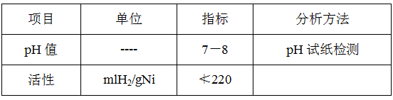 骨架鎳催化劑內(nèi)控質(zhì)量指標(biāo)如下表: