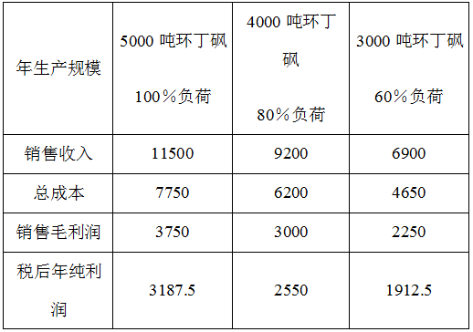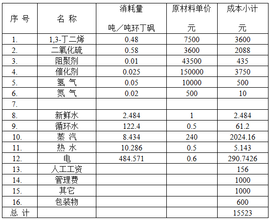 以年產(chǎn)5000噸環(huán)丁砜計算,全年成本約7761.5萬元。