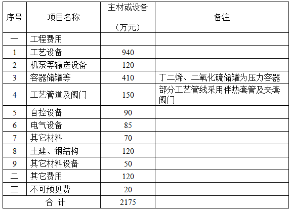 4、流動資金按500-600噸環(huán)丁砜產(chǎn)量鋪底計算。這主要是部分用戶裝置首次裝填時,一次數(shù)量較大,補劑量相對較小。但出于全面考慮,必須為首裝環(huán)丁砜的情形做資金方面的準(zhǔn)備。