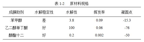 醇酯十二與其它成膜助劑相比較,水溶性小,且容易被乳膠離子吸收,可以直接接觸,更易于對膠粒的溶脹;醇酯十二的揮發(fā)速度低,成膜前保留在水性漆涂層中,溶劑作用不會受到水的揮發(fā)影響,成膜的單釜連續(xù)性好;而其又具有適宜的揮發(fā)度,在水性漆成膜后短時間內(nèi)完全揮發(fā)掉,不會影響水性漆配方設(shè)計所預(yù)期的硬度和光澤,如表1-2。