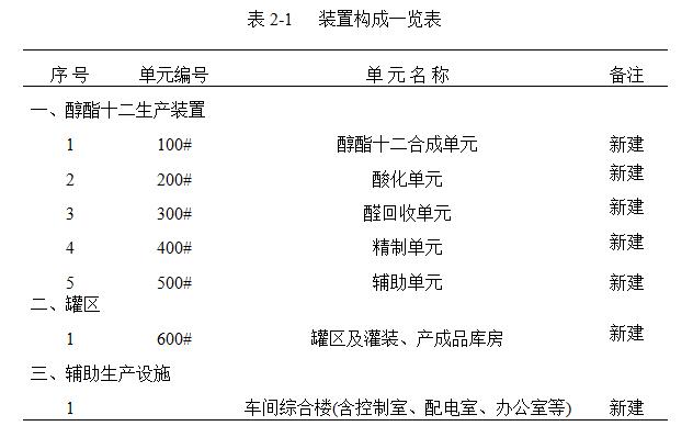 本項目為30kt/a醇酯十二生產(chǎn)項目。