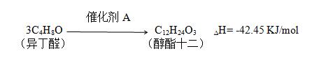 在醇酯十二反應(yīng)器中,異丁醛在特定的溫度和壓力條件以及液體縮合催化劑A的催化作用下,進行縮醛反應(yīng)生成醇酯十二(CS-12)。