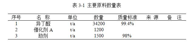 本項目生產(chǎn)所需主要原料、用量及規(guī)格見表3-1。