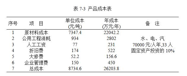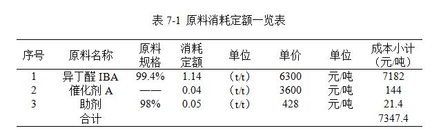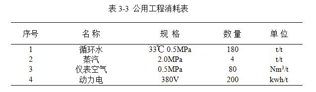 以上數(shù)據(jù)為裝置設(shè)計值,裝置生產(chǎn)達產(chǎn)后綜合指標應(yīng)低于表中數(shù)據(jù)。